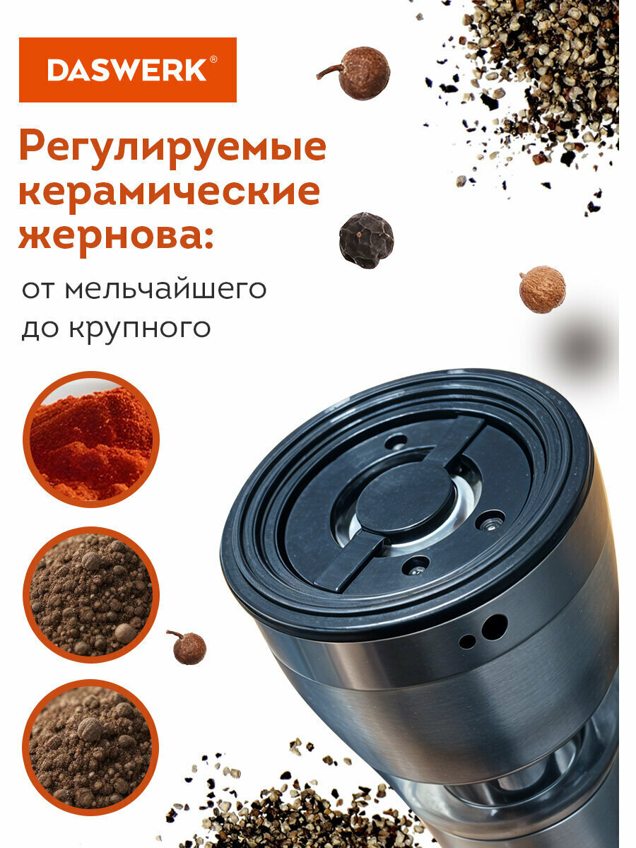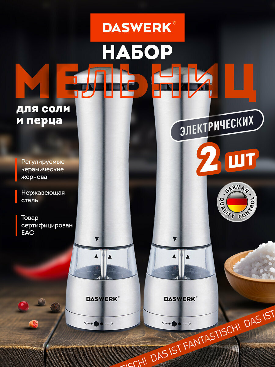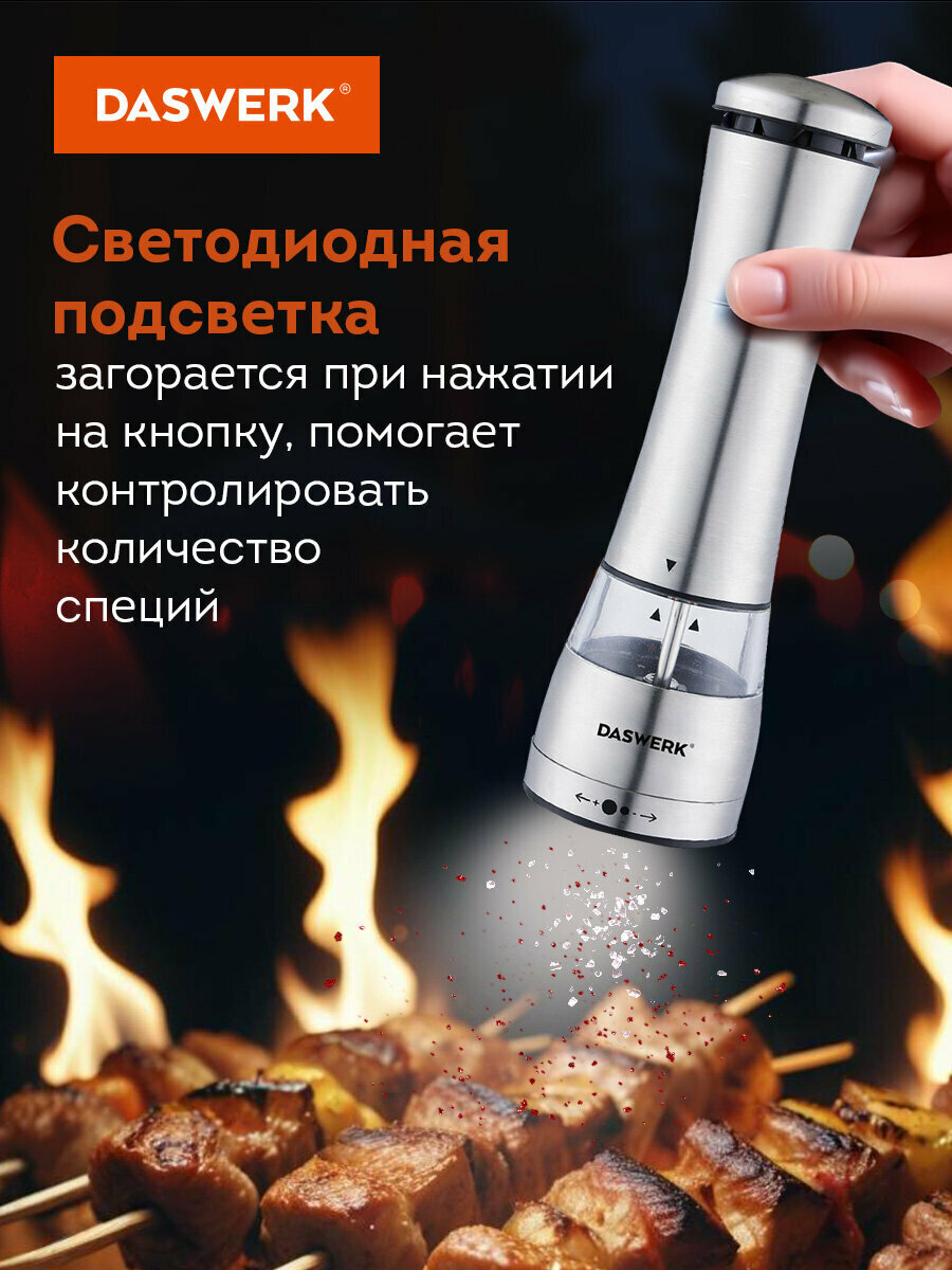 Мельница электрическая, измельчитель кухонный для приправ с подсветкой, набор 2 штуки, Daswerk (Дасверк) PM-4, 456622: сравнение цен, характеристики, фото, актуальное наличие и цены.