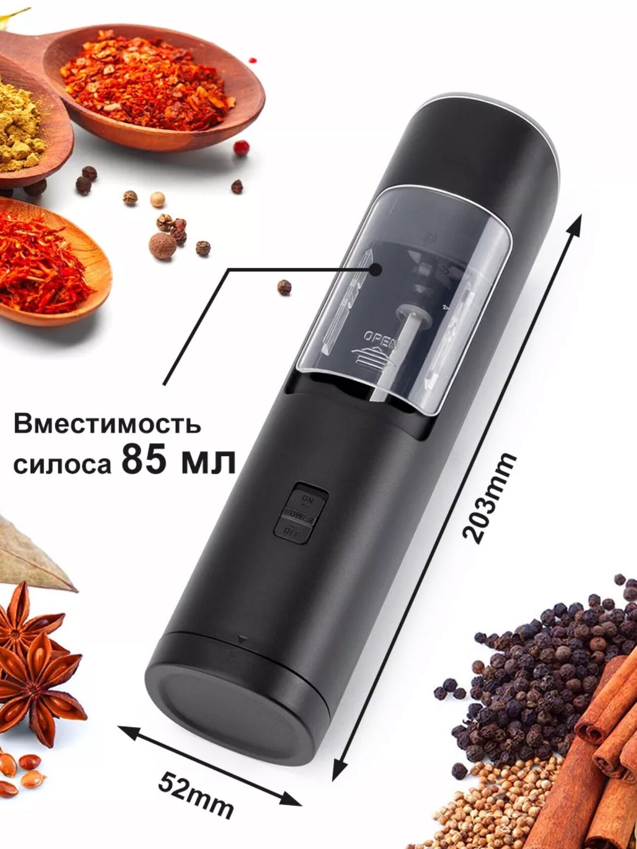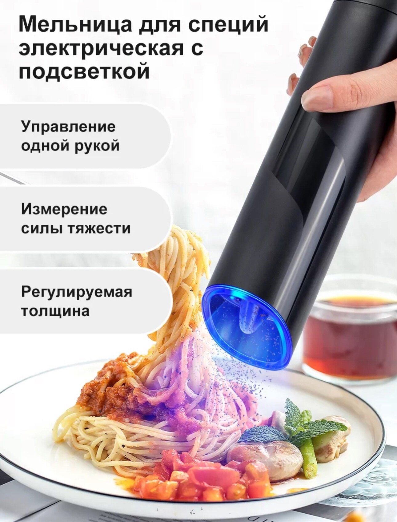 Купить Мельница для специй, соли и перца, электрическая, с подсветкой, черная с доставкой по всей России. Мельница для специй, соли и перца, электрическая, с подсветкой, черная: сравнение цен, характеристики, фото, актуальное наличие и цены.