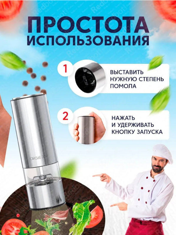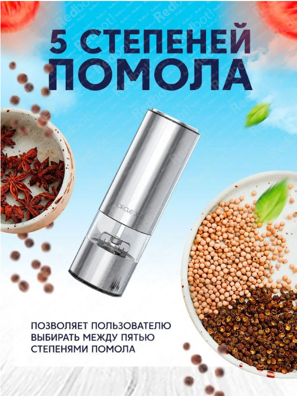 Мельница электрическая для специй в металлическом корпусе Circle Joy Electric Grinder (CJ-EG01 RUS), русская версия, серебристая: сравнение цен, характеристики, фото, актуальное наличие и цены.