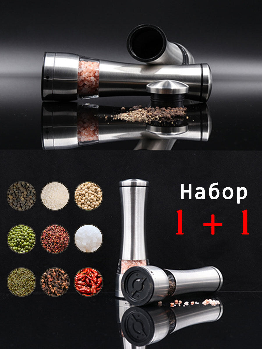 Купить Мельница набор 2 шт для специй, перца и соли, приправ перечница ручная механическая серебристая нержавеющая сталь XL с доставкой по всей России. Мельница набор 2 шт для специй, перца и соли, приправ перечница ручная механическая серебристая нержавеющая сталь XL: сравнение цен, характеристики, фото, актуальное наличие и цены.