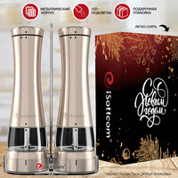 Купить Мельницы для специй электрические / электромельницы для соли и перца с подсветкой на подставке, подарочный набор iSottcom 2 шт с доставкой по всей России.