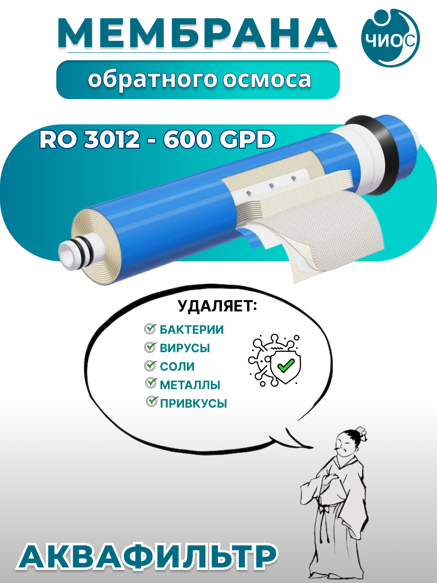 Мембрана обратного осмоса Аквафильтр RO 1812-50GPD является главным элементом обратноосмотической системы. Она обеспечивает ультраглубокую очистку воды от всех видов загрязнений: органических включений, микроорганизмов, растворенных химических примесей, солей жесткости и тяжелых металлов, радионуклидов и других.