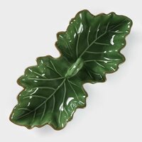 5397955 Менажница 2 ячейки Доляна «Лист», 21,8×6,9 см, цвет зелёный Менажница впишется в интерьер любой кухни и позволит интересно сервировать стол. Тарелка для закусок подойдёт для проведения вечеринок или домашних посиделок с близкими. Стильная посуда имеет несколько ячеек, в каждую из которых можно положить нарезку сыра, фрукты, мясные деликатесы, орехи, конфеты и прочие продукты. Варианты использования менажницы Столик для завтрака. Набор для суши. Сырная тарелка. Тарелка для фруктов. Ёмкость для улиток, чипсов. При бережном обращении изделие прослужит долгие годы и сохранит привлекательный внешний вид.