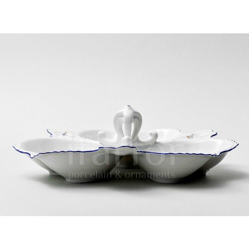 Менажница 3-х секционная Корона Гуси Форма: Queens crown Изделие изготовлено из материала: Фарфор Диаметр: 280 мм Возможны варианты росписи. Если необходимо точное соответствие фотографии товара - отметьте это в комментарии к заказу. Производитель: Чехия