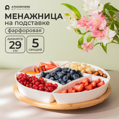 Менажница фарфоровая Atmosphere of Art «Menage» / 5 секций/ d-29см/ на бамбуковой подставке: сравнение цен, характеристики, фото, актуальное наличие и цены.
