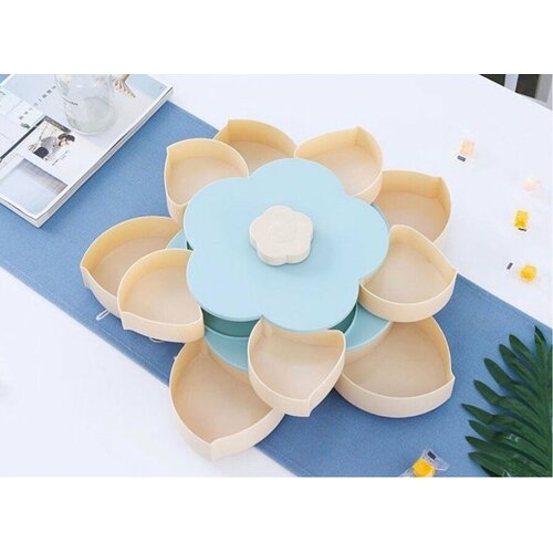 Менажница 2-ярусная, 10 отделений, Это удивительное изобретение, состоящее из нескольких емкостей с лепестками, которые выдвигаются, объединяет одно основание. Раскрывающееся блюдо дает возможность разложить фрукты или сладости в одном месте, не смешивая их. Менажница - экономит не только место на столе, но и делает сервировку эффектной. Стоит легким движением руки повернуть цветок на крышке, как лепестки откроются и блюдо увеличится в размере.