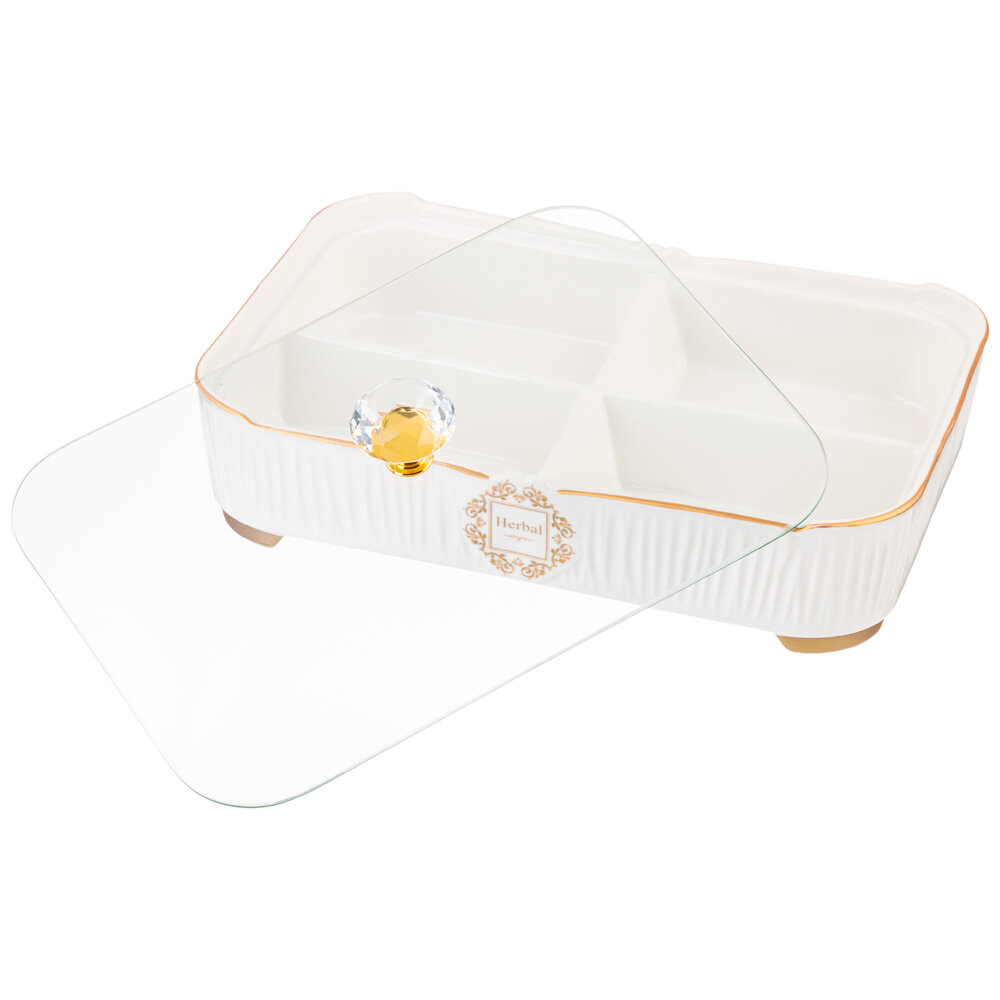 Коллекция «Herbal” ТМ LEFARD – это настоящая находка для хозяйки. Удивить гостей и домашних совсем непросто и поэтому дизайнеры торговой марки обращают внимание на способы подачи блюд и организацию чаепитий. Мармиты прямоугольные и овальные, менажницы круглые и прямоугольные на 4 и 5 секций с пластиковыми крышками и без, креманки, салатники разных размеров, банки, чайники с металлическими ситами, чайные пары и кружки помогут в этом. Изделия выполнены из упрочненного фарфора с отделкой близкой по цвету золотой. Красивый рельеф напоминает стебли сочных трав и создает игру света благодаря блестящей глянцевой поверхности. Это хороший подарок. Стильная цветная упаковка. Посуда прошла сертификацию. Безопасна для контакта с пищевыми продуктами. Изделия не рекомендуется использовать в микроволновой печи, мыть в посудомоечной машине. Сервировочное блюдо предназначено для сервировки праздничного стола. Блюдо сервировочное из фарфора предназначено для подачи и сервировки горячих и холодных блюд, фруктов, нарезок, канапе, тортов, пирогов, пирожных, оладий, для суши, для шашлыка, для рыбы. Блюдо фарфоровое станет элегантным элементом декора в интерьере. Оригинальное декоративное блюдо отлично подойдет для повседневной сервировки или как предмет интерьера. Тарелка закусочная принесет праздничную атмосферу и подарит каждому хорошее настроение. Тарелка декоративная может служить как десертная тарелка, сервировочная тарелка, а также как менажница для закусок или тарелка для сыра. Сервировочные тарелки станут настоящим украшением кухни или приятным подарком для ваших родных и близких! Красочная посуда может быть использована для дома, для дачи, для офиса в ресторанах и кафе. Сервировочная посуда используется при организации выездных праздников. Оригинальная посуда для кухни прекрасный подарок вашим родным, близким, друзьям, для мамы, для бабушки, для сестры, для свекрови, для тещи, для папы, для дедушки на День Рождения, на Новоселье, на свадьбу, на день матери, на 8 марта, на 23 февраля, на Пасху, на Масленицу.
