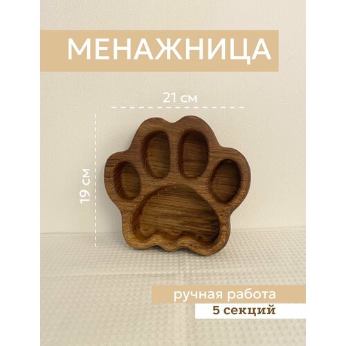 Элегантная менажница, выполнена вручную из целикового массива дуба. Менажница — это не только функциональный предмет, но и эстетичное дополнение к вашему столу. Рисунок дерева в природе не повторяется, поэтому каждая менажница уникальна.