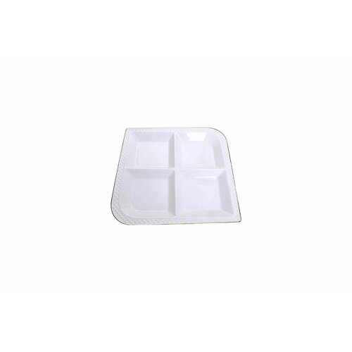 Элегантная менажница LORAINE выполнена из керамики, сочетает в себе изысканный дизайн с максимальной функциональностью. По краям оформлена элегантным декором с золотистой каймой. Менажница имеет квадратную форму на 4 секции и предназначена для красивой сервировки конфет, фруктов и десертов. Менажница украсит сервировку вашего стола и подчеркнет прекрасный вкус хозяина, а также станет отличным подарком. Менажница LR; Материал: фарфор; Цвет: белый, золототой; Секций: 4 шт; Высота блюда: 2,5 см; Размер блюда: 23,5 х 23,5 см; Размер упаковки: 24,3 х 2,9 х 25 см; Упаковка: коробка; Вес: 680 г; Страна производитель: Китай. Менажница LR. Материал: фарфор. Цвет: белый, золототой. Секций: 4 шт. Высота блюда: 2,5 см. Размер блюда: 23,5 х 23,5 см. Размер упаковки: 24,3 х 2,9 х 25 см. Упаковка: коробка. Вес: 680 г. Страна производитель: Китай.