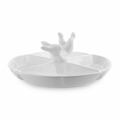 Менажница имеет оригинальный дизайн в виде кролика-непоседы, что делает ее не только функциональной, но и стильной деталью вашего стола. Белый цвет изделия подойдет к любому интерьеру и станет ярким акцентом на столе.