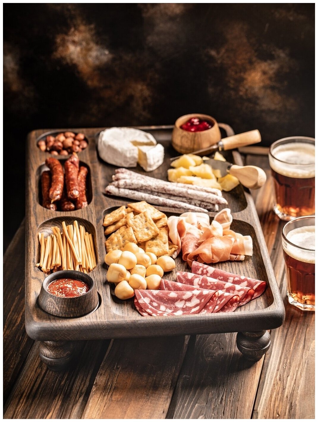 Менажница на ножках из темного дуба - это не просто функциональный предмет сервировки, но и стильный элемент декора, который придаст вашему столу изысканный вид.