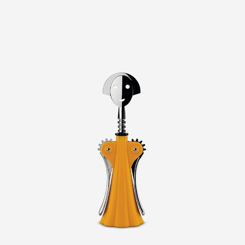 Штопор Anna G. в с корпусом в жёлтом цвете с деталью чёрного цвета, коллекция Colour Tales. Настоящий бестселлер Alessi был разработан Алессандро Мендини (Alessandro Mendini) в 1994 году и с тех пор только приумножил свою популярность. Этот кухонный аксессуар — идеальный подарок для ценителей наивного дизайна.