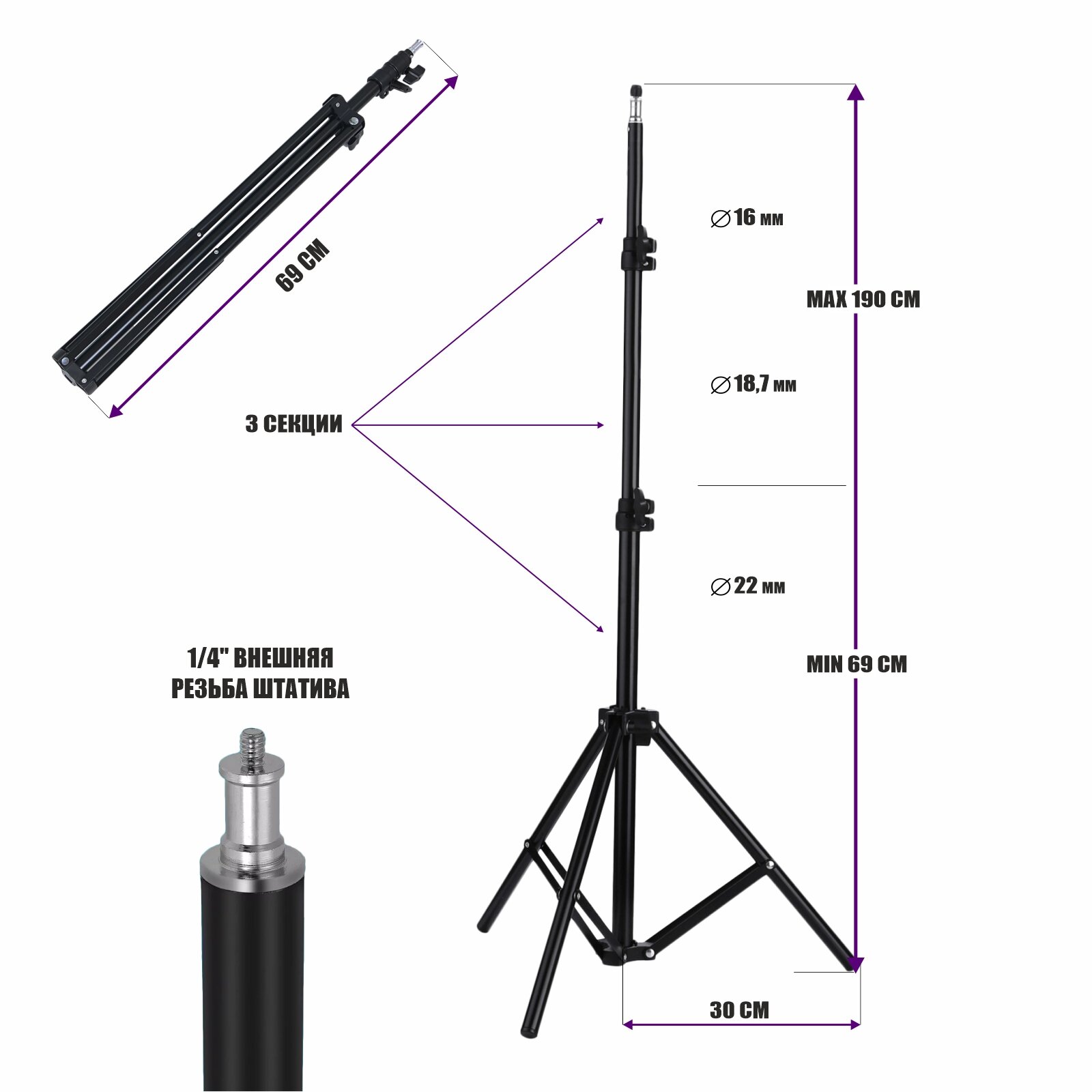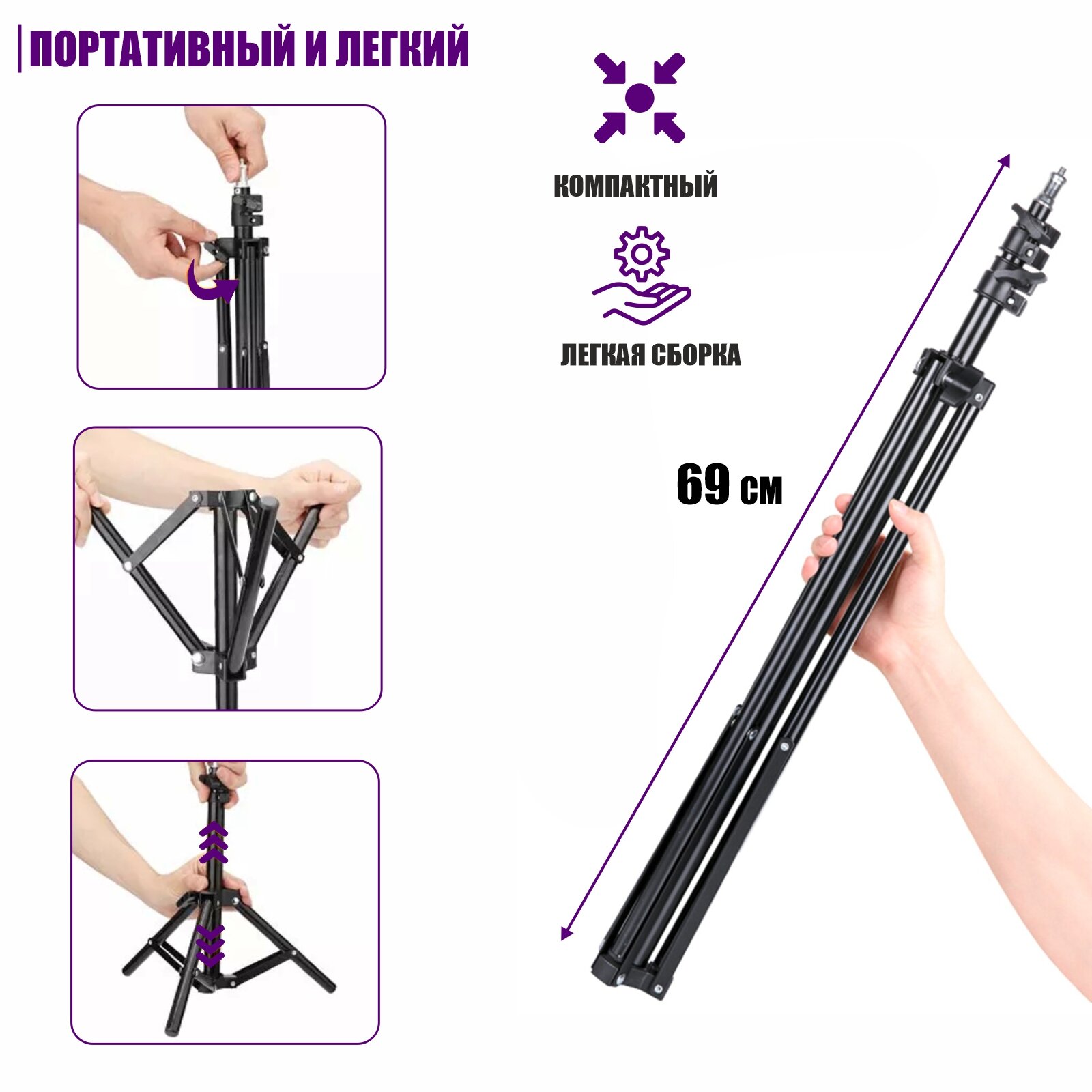- Высота штатива 69-190 см;