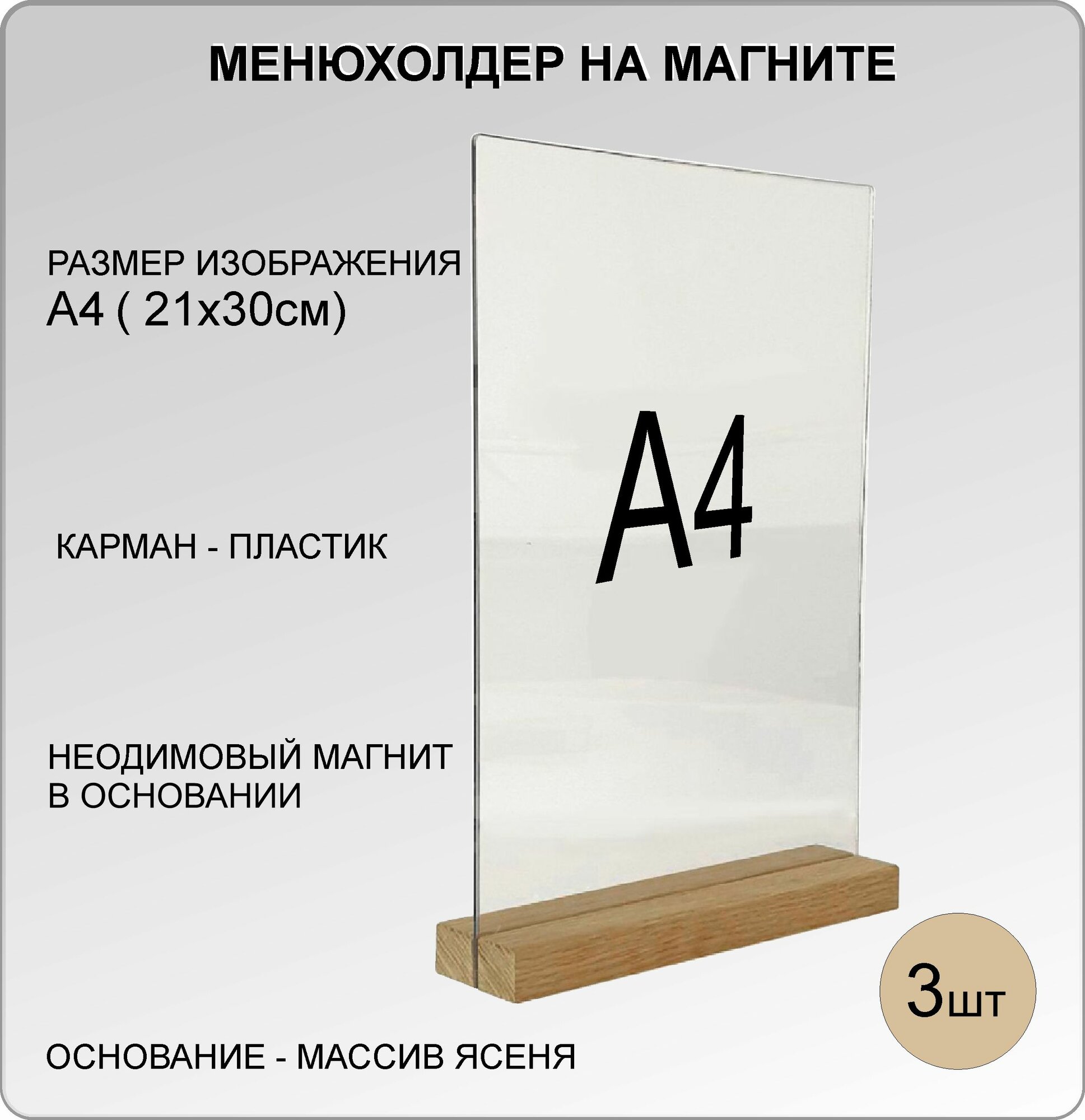 Менюхолдер А4 на деревянном магнитном основании , 3 шт, подставка настольная для рекламных материалов вертикальная: сравнение цен, характеристики, фото, актуальное наличие и цены.