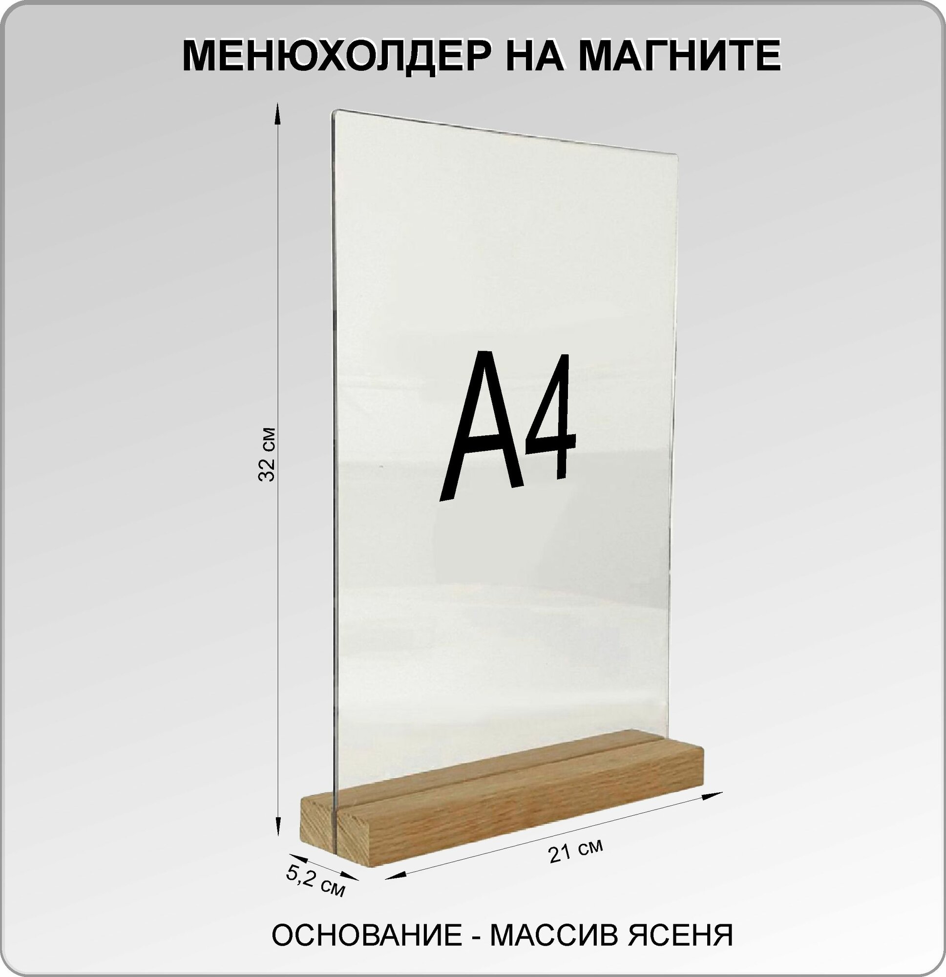 Купить Менюхолдер А4 на деревянном магнитном основании , 3 шт, подставка настольная для рекламных материалов вертикальная с доставкой по всей России.