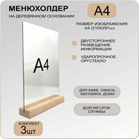 Менюхолдер А4 на деревянном основании комплект 3шт. Подставка под меню настольная вертикальная для рекламных материалов: сравнение цен, характеристики, фото, актуальное наличие и цены.