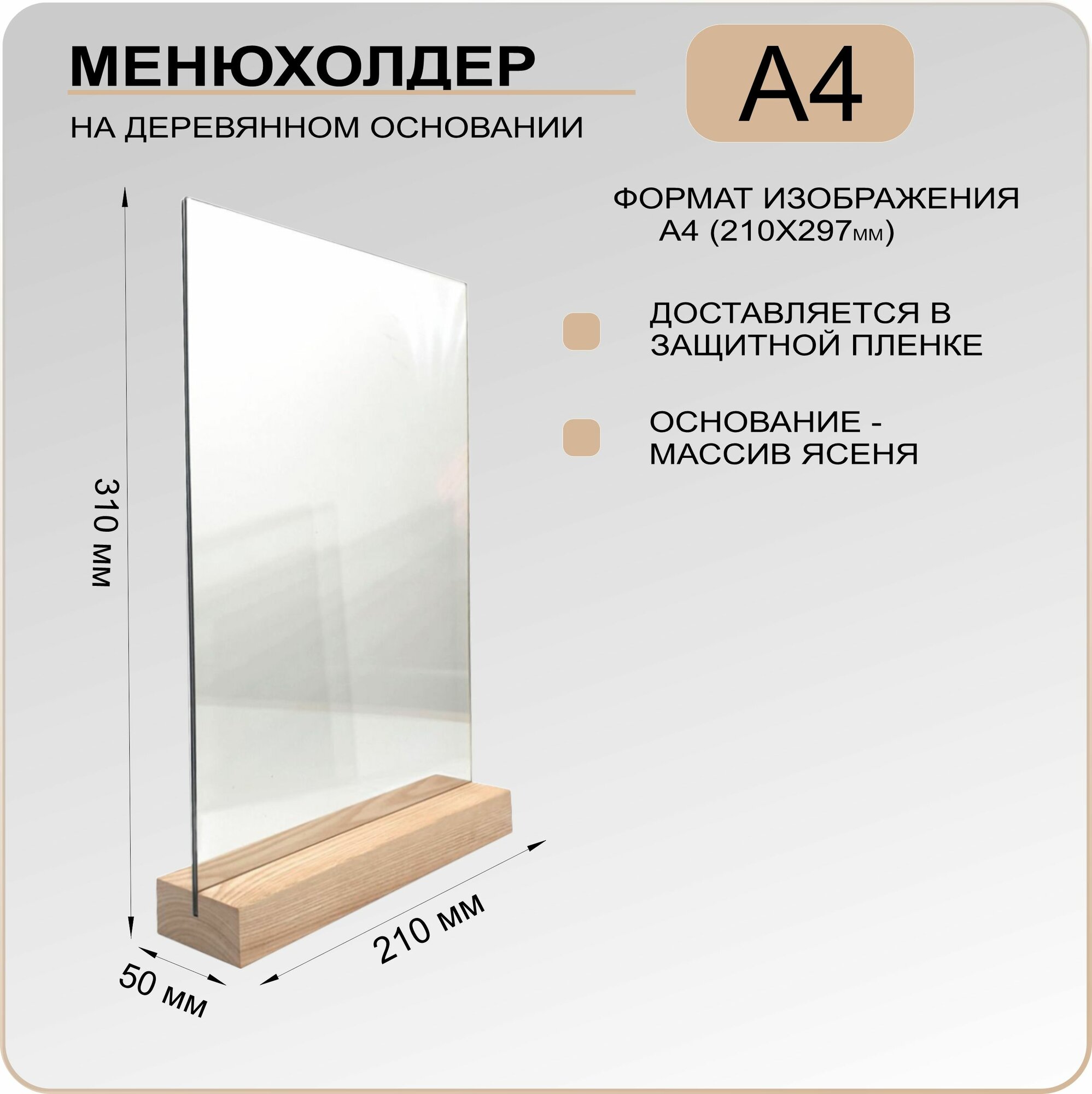 Купить Менюхолдер А4 на деревянном основании, вертикальный, комплект 5 шт. Подставка настольная для рекламных материалов с доставкой по всей России.