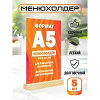 Менюхолдер А5 на деревянном основании , комплект 5 штук / Подставка под меню настольная вертикальная двухсторонняя для рекламных материалов: сравнение цен, характеристики, фото, актуальное наличие и цены.
