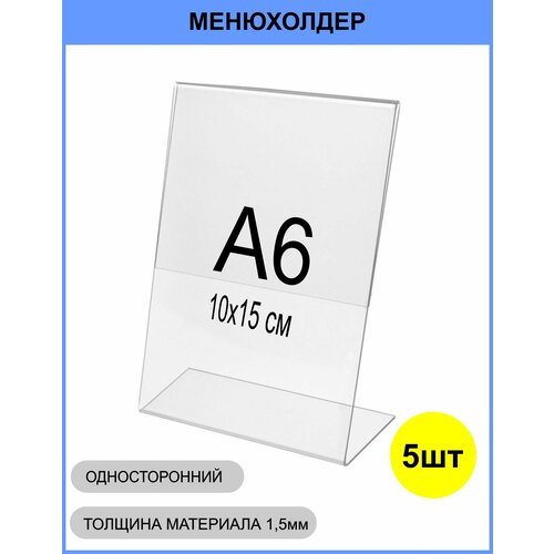 Купить Менюхолдер А6 (тейбл тент) вертикальный односторонний (105х148 мм) 5 шт, подставка настольная для рекламных материалов с доставкой по всей России. Менюхолдер А6 (тейбл тент) вертикальный односторонний (105х148 мм) 5 шт, подставка настольная для рекламных материалов: сравнение цен, характеристики, фото, актуальное наличие и цены.