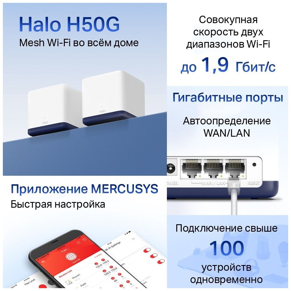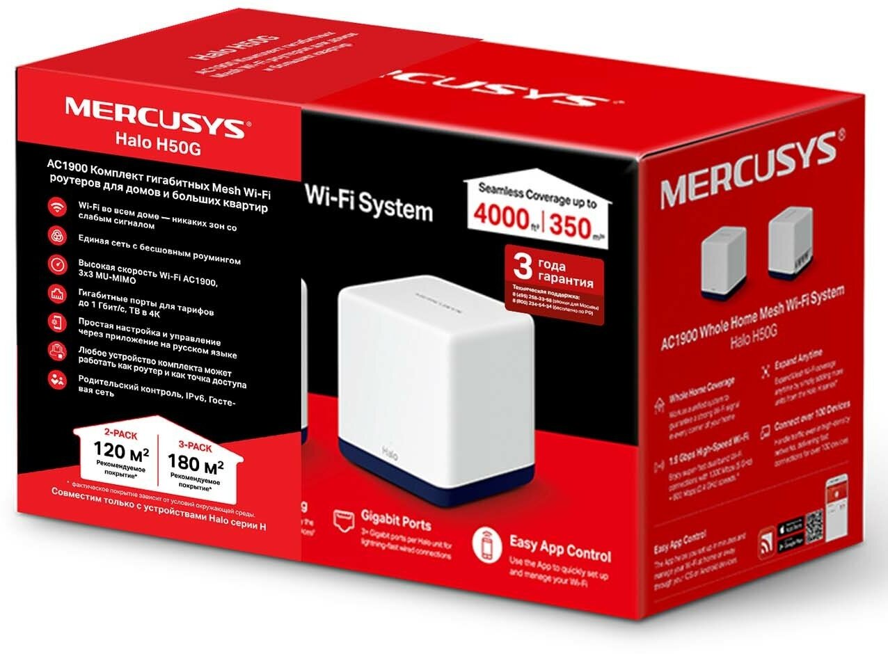 Купить Mercusys Halo H50G(2-pack) Mesh Wi-Fi система AC1900, до 600 Мбит/с на 2,4 ГГц + до 1300 Мбит/с на 5 ГГц, комплект 2 шт с доставкой по всей России.