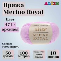 Мериносовая пряжа для вязания Alize Merino Royal, цвет 474 орхидея, моток 50г, 100м, 10 мотков/упак: сравнение цен, характеристики, фото, актуальное наличие и цены.