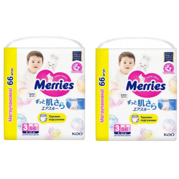 Купить Набор 2 х Merries трусики M (6-11 кг), 66 шт с доставкой по всей России. Набор 2 х Merries трусики M (6-11 кг), 66 шт: сравнение цен, характеристики, фото, актуальное наличие и цены.