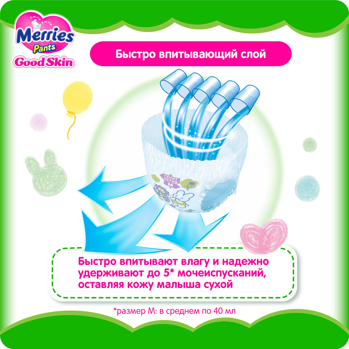 Merries Трусики для детей Good Skin, размер M 7-12 кг, 50 шт, 2 уп: сравнение цен, характеристики, фото, актуальное наличие и цены.
