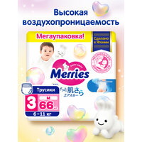 Детские одноразовые японские трусики-подгузники Merries (Меррис) для малышей с весом от 6 до 11 кг (размер M, 3) созданы с особенной заботой о коже и комфорте Вашего ребёнка. Идеально подойдут малышу, который начинает активно двигаться и переворачиваться, учится садиться и ползать. Merries – победитель премии «Марка №1 в России» в 2022 г. в категории «Подгузники и трусики для детей» и лучший бренд для малышей по признанию мам. Анатомический крой трусиков Меррис, учитывающий все особенности растущего малыша, обеспечивает комфорт и свободу движений ребёнка. Трусики легко снимать, надевать и удобно носить. Они хорошо сидят на талии, не сползают, не жмут и не оставляют следов на нежной коже малыша. Трусики Merries хорошо подходят как дневные подгузники, когда ребёнок максимально подвижен, так и в качестве ночных подгузников, когда малыш дольше не переодевается. Удлинённый впитывающий слой в задней части трусиков предотвращает протекание, когда ребёнок долго лежит на спине. А оборочки нежно облегают ножки и не образуют щелей, даже если ребёнок много ворочается ночью. Гипоаллергенные материалы не вызывают раздражений, опрелостей и дискомфорта. Полимерный абсорбент отлично впитывает большое количество жидкости, превращает её в гель и защищает от протеканий даже при значительном надавливании. Волнистая бархатная поверхность с увеличенными ячейками в центральной зоне трусиков уменьшает площадь соприкосновения подгузников с чувствительной кожей малыша, что особенно важно на этапе развития, когда ребёнок больше лежит. Мелкие ячейки по бокам волнистого слоя надёжно удерживают жидкий стул, характерный для первых месяцев жизни, предотвращая его растекание по подгузнику. Обновлённая технология трёх воздухопроницаемых слоёв сохраняет кожу малыша сухой и здоровой, обеспечивая свободное выведение прелого воздуха из подгузника. Внутренняя поверхность трусиков остаётся удивительно мягкой для кожи ребёнка и не прилипает к попке даже после того, как впитает большой объём жидкости. Трёхполосный индикатор наполнения легко проверить, не раздевая полностью малыша. Если полоски сменили цвет, трусики пора заменить на новые. Мягкий эластичный поясок не давит на животик и растягивается в 2,5 раза, что позволяет легко сменить трусики, когда малыш лежит. Ультразвуковой метод соединения боковых швов делает шов более мягким. Теперь при смене подгузника он разрывается ещё легче, а при ношении трусиков не ощутим для малыша, не натирает и не оставляет следов на коже. Эластичная лента для утилизации растягивается в 2 раза и надёжно фиксирует даже переполненный подгузник. Более широкий впитывающий слой по всей области между ножек не позволяет жидкости скапливается в одном месте, поэтому трусики не сбиваются в комок, не провисают и не создают дискомфорта, даже когда они уже наполнены. Трусики Merries подходят для девочек и для мальчиков. Не требуют использования защитных кремов и присыпок.