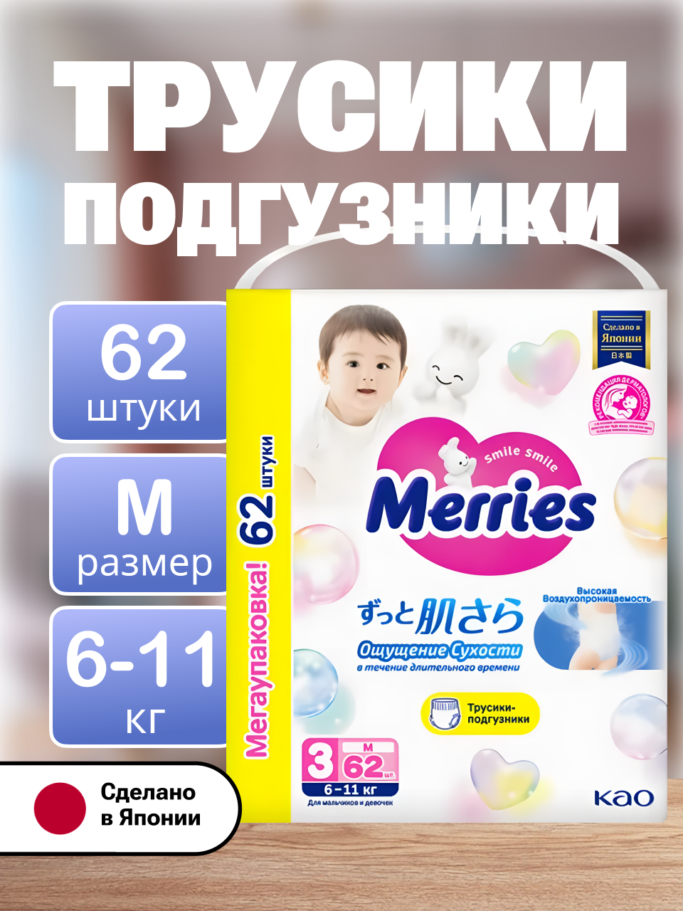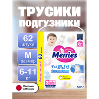 Купить Merries, трусики-подгузники детские, размер М / 3, (6-11 кг), 62 шт с доставкой по всей России. Merries, трусики-подгузники детские, размер М / 3, (6-11 кг), 62 шт: сравнение цен, характеристики, фото, актуальное наличие и цены.