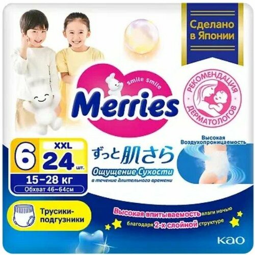 Купить Merries трусики XXL (15-28 кг) 24 шт с доставкой по всей России. Merries трусики XXL (15-28 кг) 24 шт: сравнение цен, характеристики, фото, актуальное наличие и цены.