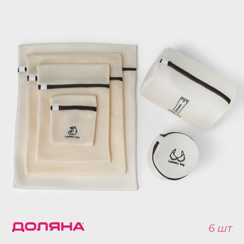 Мешок для стирки от Доляна – это незаменимый помощник в уходе за одеждой. В наборе вы найдете 6 различных размеров, что позволяет использовать их для стирки разных видов одежды и аксессуаров.