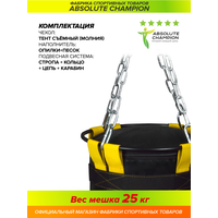 Груша для бокса изготовлена специально для Вас и заряжена успехом чемпионов Мира! Мешок разработан профессиональным боксером и чемпиона Мира Сироткиным и фабрикой спорттоваров Absolute Champion! Груша изготовлена из прочного тента плотностью 650 г/м2. Состоит из чехла, наполнителя и системы крепления. Груша прослужит Вам долго, будьте уверены в качестве продукции на 100% Наполнитель песок и опилки. Подвесная система состоит из металлического кольца, цепи и карабина (стропа и карабин). Внутри между чехлом и наполнителем проложен изофлекс изолон поролон, что улучшает качество, внешний вид и форму. Груша надежна упакована в пакет и плотный картон, что защищает ее при транспортировке. Рекомендуется наносить удары в защитной экипировке (защите - снаряжении), шлеме и перчатках. У нас есть широкая линейка боксерских мешков, как для детей и подростков, так и для взрослых большие. Груши навесные со стропой, широкая цветовая гамма и различные веса 15, 22, 20, 25, 30, 35, 40, 60, 50, 65 кг. Качество соответствует мировым стандартам. Песок без резиновой крошки ппу резины. У нас Вы можете купить спортивные товары, тренажер и инвентарь: кронштейны для мешков, держатель в комплект, аксессуары, турники настенные брусья 3в1, наддверный (крепежи), хайлетсы, эспандеры, детские тарзанки и качели для детей дома, наборы детские для игры, ролик для пресса.Переходите на наш магазин Absolute Champion и выбирайте товары для себя и в подарок, отличный мужской и женский подарочный презент для мальчика и на праздник к 23 февраля и к 8 марта. Подойдет для всех, кто занимается борьбой, дзюдо, каратэ, мма, кикбоксинг, box, тхэквондо. Проводим различные акции, дарим скидки. На всю продукцию гарантия 1 год. Супер подарок для каждого человека, на любой праздник, это практично и такой подарок sport будет всегда полезен для здоровья, сделайте подарок себе или своим близким уже сегодня! Покупайте продукцию от фабрики спорт товаров Absolute Champion и получайте товары, заряженные энергией успеха Чемпионов Мира!