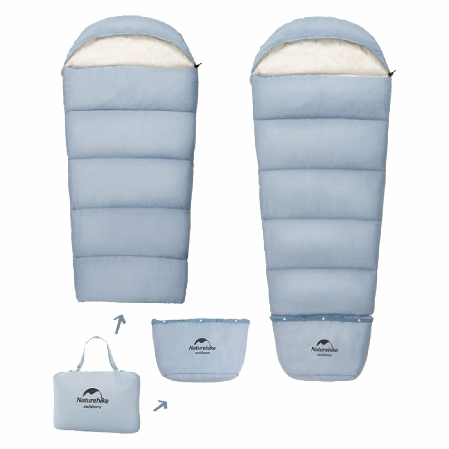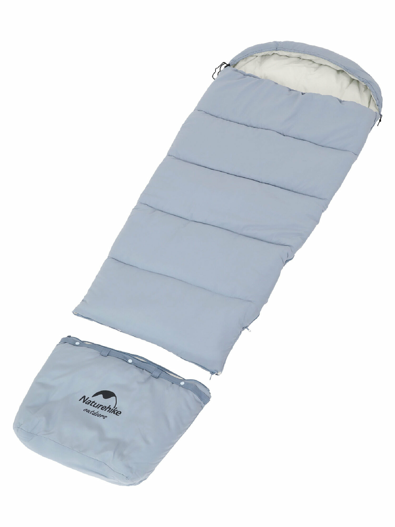 Naturehike C300 — мягкий и уютный детский спальник для летних походов и семейного отдыха на природе. Его уникальная конструкция растёт вместе с ребёнком: стандартный размер (до 130 см) легко расширяется дополнительной секцией для подростков до 160 см. Внутренняя ткань, напоминающая хлопковое постельное бельё, приятна на ощупь и не скользит, обеспечивая комфорт даже самым активным малышам. Синтетический утеплитель из полого волокна сохраняет тепло, но при этом выдерживает машинную стирку — идеально для частого использования.