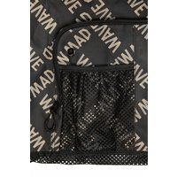 Мешок легко и быстро затягивается с помощью прочного шнура с клипсой. Плечевые лямки могут регулироваться по длине, а специальная петля на верхней части мешка позволяет с легкостью повесить или переносить в одной руке. На передней части мешка располагается объемный карман на молнии с сетчатой вставкой, в котором легко поместятся шлепки, очки и шапочка.