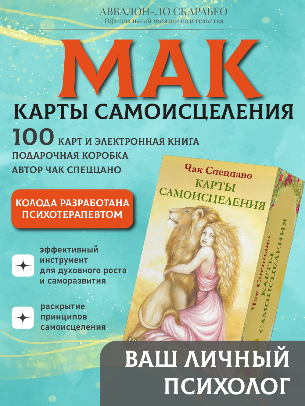 Метафорические карты "Спеццано - Карты самоисцеления" представляют собой новый набор ассоциативных карт, разработанный авторами Чаком Спеццано и Петрой Кюне. Этот набор поможет вам разобраться со своими проблемами, найти ментальную причину заболевания и запустить процесс самоисцеления.