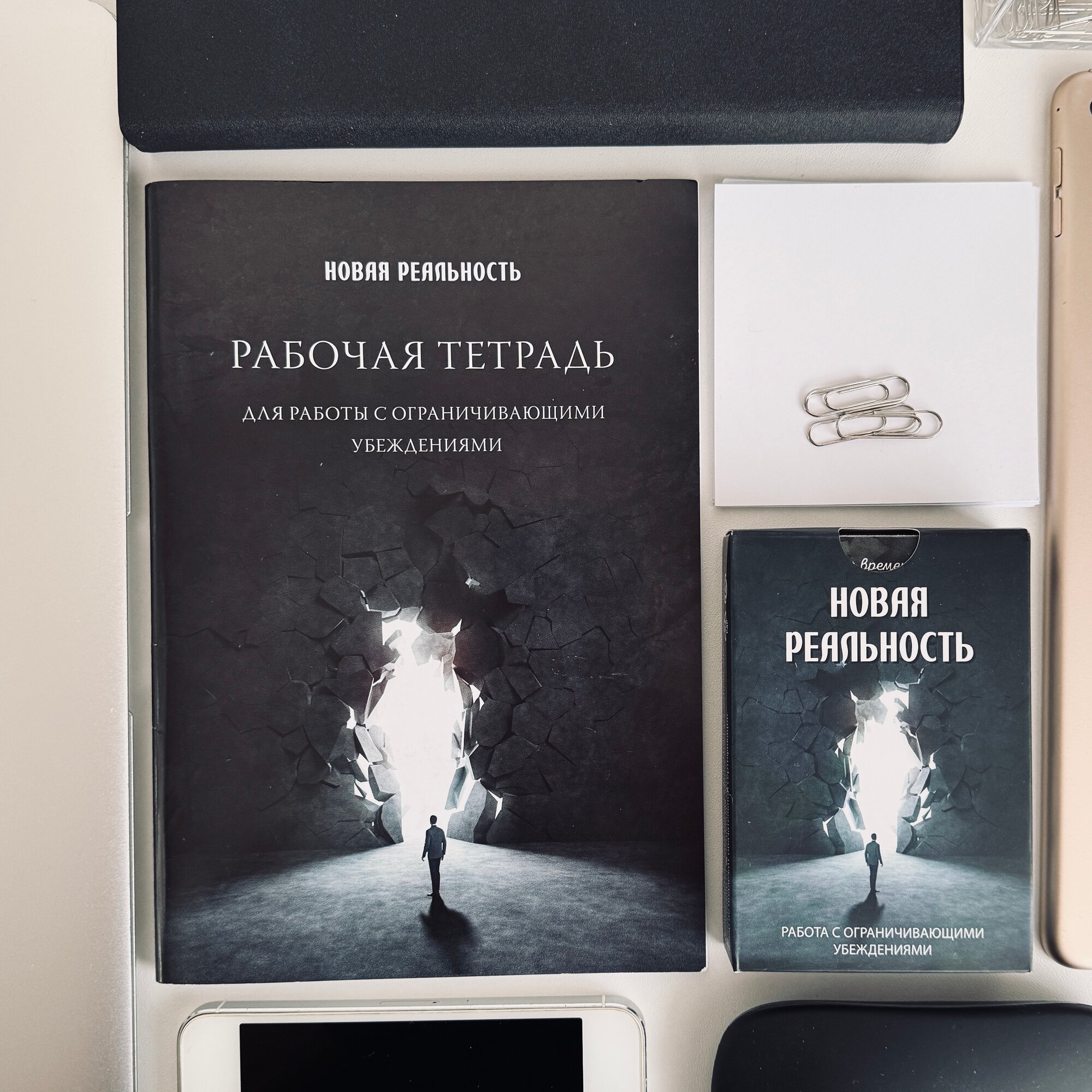 характеристики. Колода «Новая реальность» состоит из 50 карт со 150 негативными убеждениями и позитивными утверждениями для их замены. На обороте каждой карты размещена метафорическая цитата: ее используют как совет на день, для помощи в принятии решения. Ровный срез и скругленные углы обеспечивают комфортную и удобную работу. Ассоциативные карты МАК плотные, долговечные, напечатаны на качественном картоне плотностью 300гр/м2. Рабочая тетрадь состоит из 60 страниц для глубокой проработки 12 негативных убеждений в 4 сферах жизни по выбору. Тетрадь имеет плотные страницы из качественной мелованной бумаги формата А5. Ручка легко скользит по бумаге во время письма, создает приятные тактильные ощущения. Плотная картонная обложка позволяет не переживать за сохранность рабочей тетради при частом использовании.