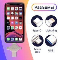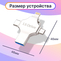 Металлическая флешка 4 в 1 LS Drive Device 128 Gb / Флеш-накопитель Lightning, Type-C, Micro USB, USB / Лайтнинг, Тайп-Си, Микро ЮСБ, ЮСБ, 128 ГБ: сравнение цен, характеристики, фото, актуальное наличие и цены.
