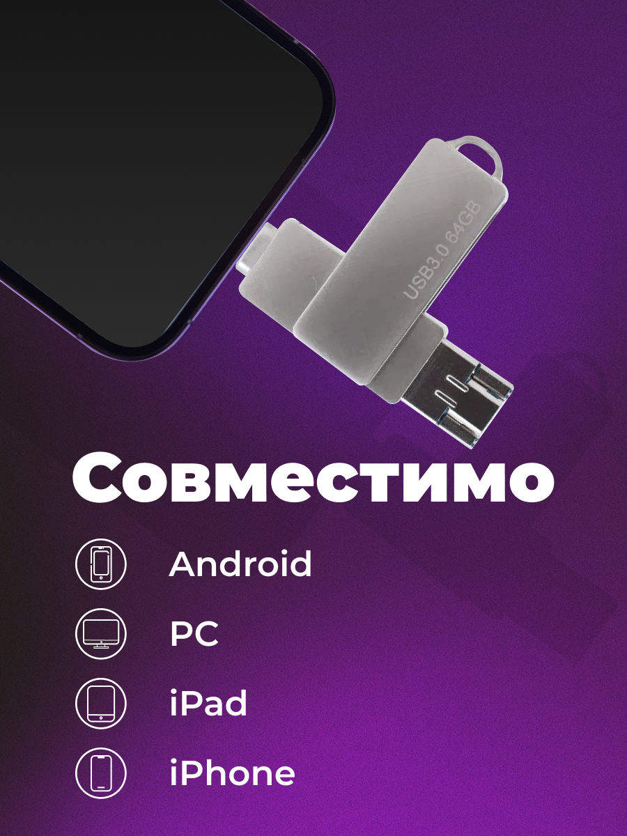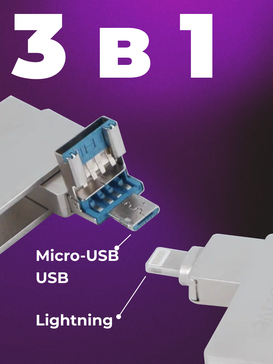 Флешка 64gb — это надежное и удобное устройство для хранения и передачи данных. Благодаря наличию трех разъемов (Lightning, Type-C, USB) , эта usb флешка обеспечивает широкую совместимость с различными устройствами, включая смартфоны, планшеты, компьютеры и другие гаджеты.