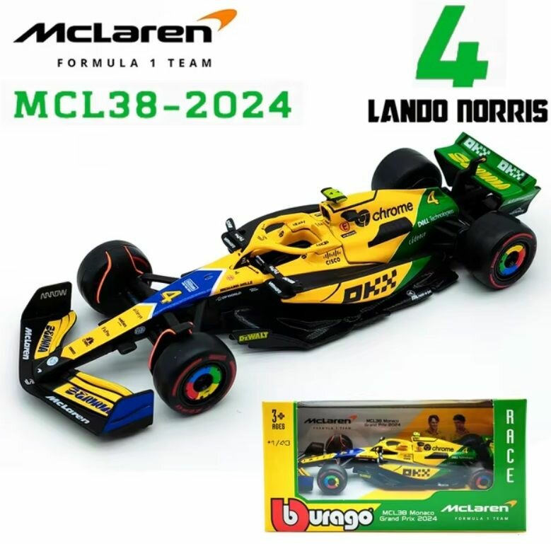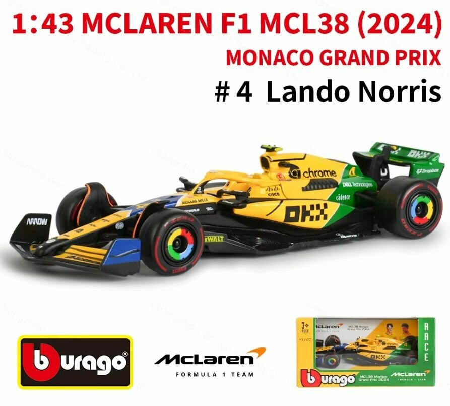 Металлическая коллекционная модель «Bburago» болида «Макларен» Ландо Норрис. (Lando Norris «McLaren» Monaco Grand Prix, MCL38 №4) Гран-при Монако. Формула-1 сезон 2024. Масштаб 1:43: сравнение цен, характеристики, фото, актуальное наличие и цены.