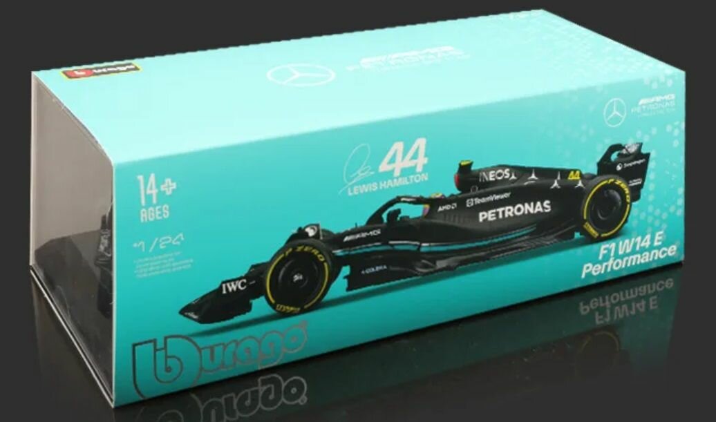 Металлическая коллекционная модель "Bburago" болида "Мерседес" Льюис Хэмилтон. (Lewis Hamilton "Mercedes" W14 №44) Формула-1 сезон 2023. Масштаб 1:24. Длина -24 см