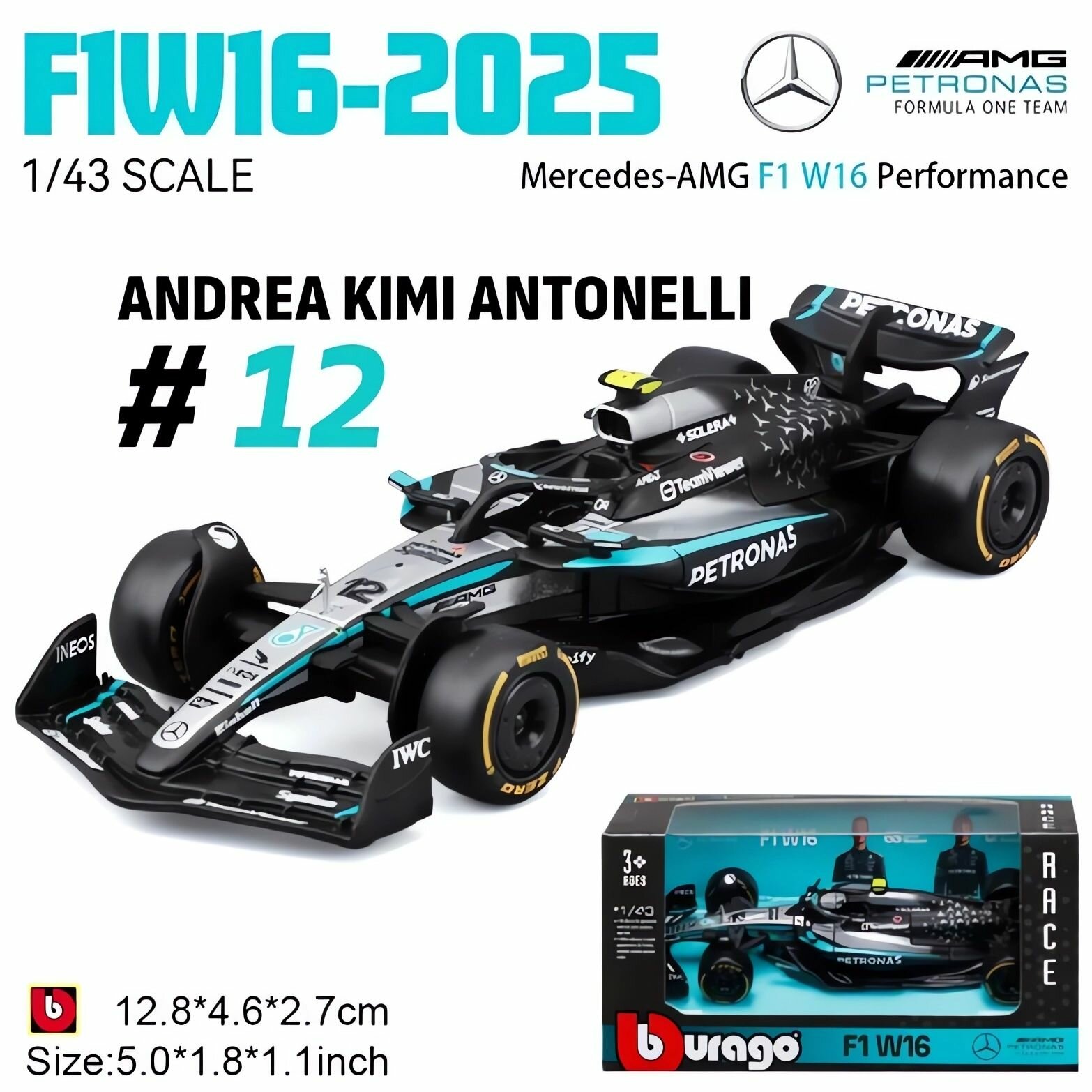 Купить Металлическая коллекционная модель болида Формулы-1. «Bburago». «Мерседес» Андреа Кими-Антонелли («Mercedes» W16 №12) Сезон 2025. Масштаб 1:43 с доставкой по всей России. Металлическая коллекционная модель болида Формулы-1. «Bburago». «Мерседес» Андреа Кими-Антонелли («Mercedes» W16 №12) Сезон 2025. Масштаб 1:43: сравнение цен, характеристики, фото, актуальное наличие и цены.