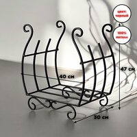 Купить Металлическая кованая дровница решетка для камина и бани под дрова для дома и улицы, 47х40х30 см, черный с доставкой по всей России.