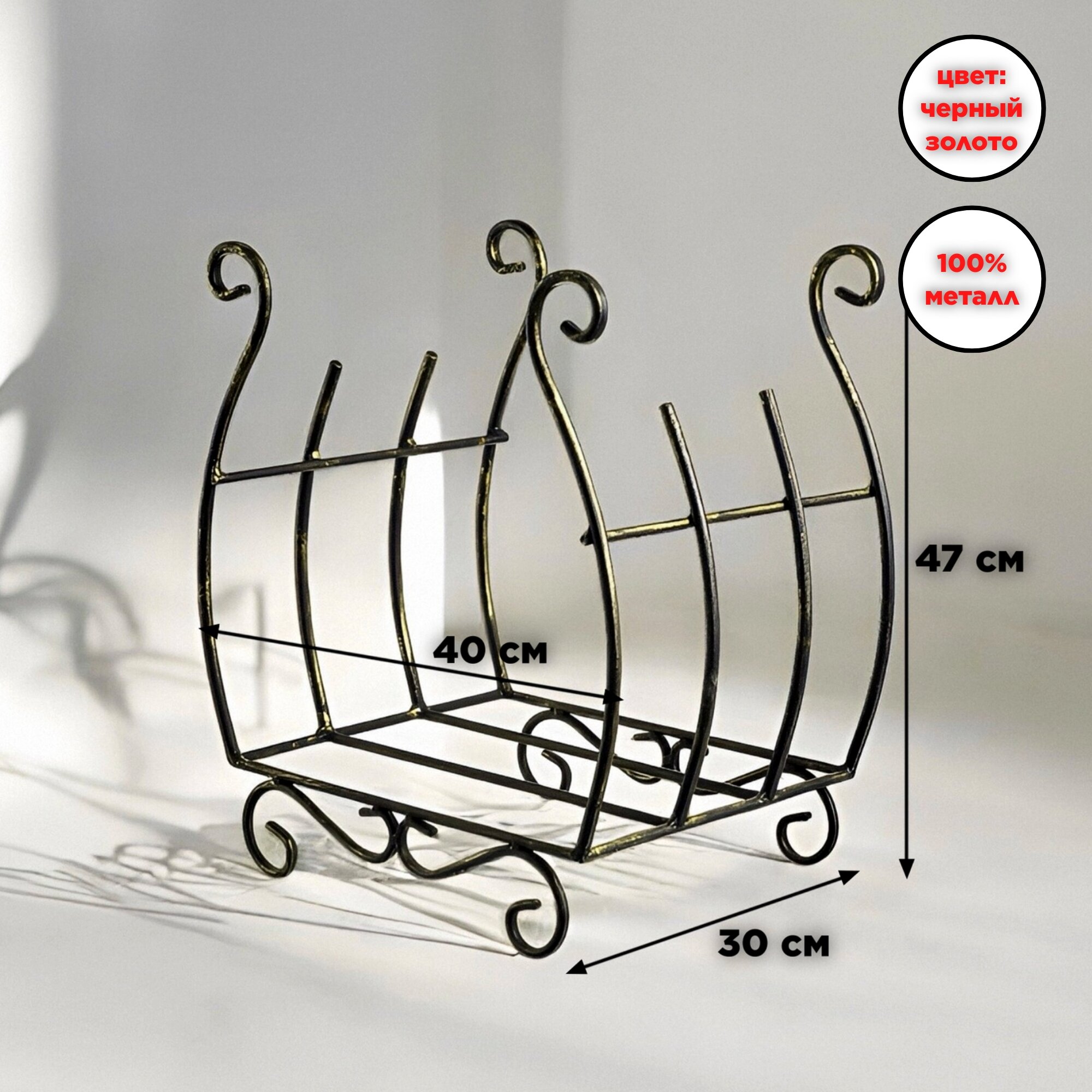 Купить Металлическая кованая дровница решетка для камина и бани, 47х40х30 см, черный-золото с доставкой по всей России. Металлическая кованая дровница решетка для камина и бани, 47х40х30 см, черный-золото: сравнение цен, характеристики, фото, актуальное наличие и цены.
