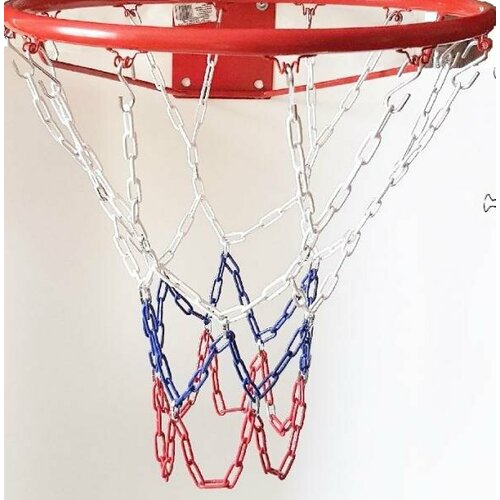 Сетка изготовлена из прочной металлической окрашенной цепи, что обеспечивает ее долговечность и устойчивость к внешним воздействиям, таким как вандализм. Цвет сетки - российский триколор украсит дизайн вашей площадки. Такая сетка станет отличным выбором для школ, спортивных площадок, дворов и других общественных мест, где требуется надежное и безопасное оборудование для игры в баскетбол.