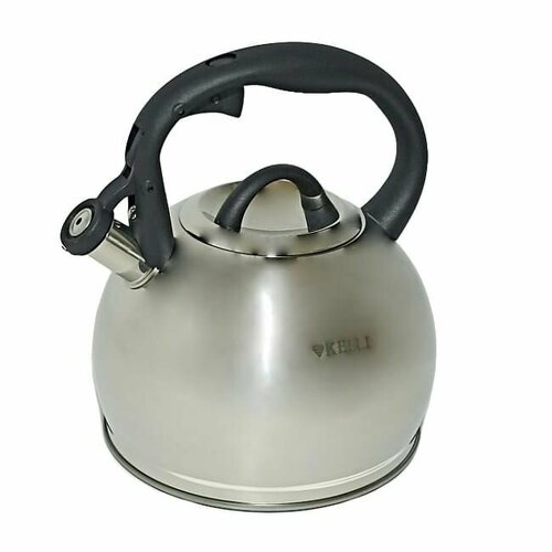Металлический чайник для плиты Kelli со свистком. Объем: 2 литра. Изготовлен из высококачественной нержавеющей стали.
