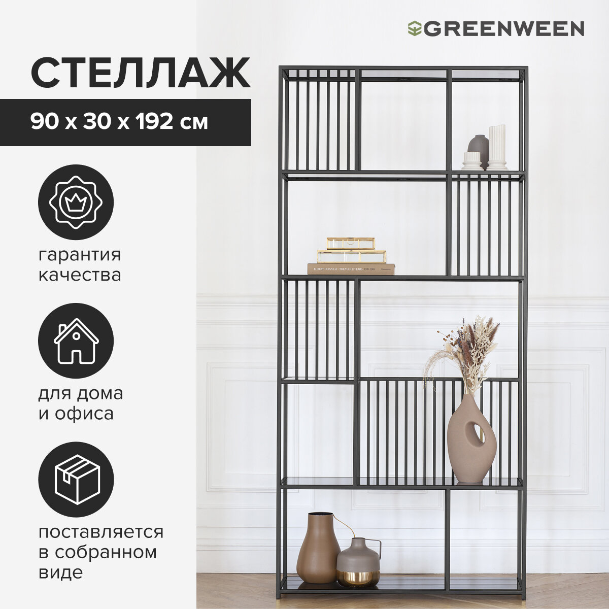 Отличительной чертой этого стеллажа является его универсальность – он идеально подойдет для гостиной, спальни, кабинета или офиса.