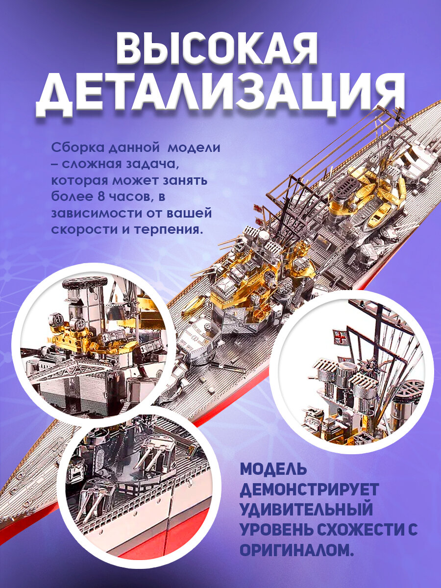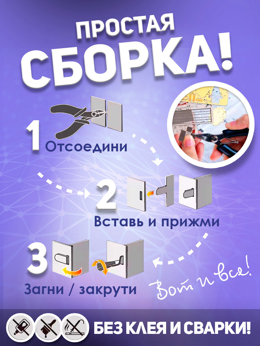 Модель сборная не только функциональна и интересна, но и красиво оформлена! 3D-конструктор из металла отличное решение для подарка. Поистине уникальное изделие ручной работы станет достойным украшением интерьера. Сборка 3D Metal Model - сложная задача, которая может занять более 4 часов, в зависимости от вашей скорости и терпения. Металлический 3D-пазл демонстрирует удивительный уровень точности с оригиналом. Металлические 3D-модели, сборные модели 3Д конструктора - изготовлены из высококачественной нержавеющей стали, и все металлические детали легко скрепляются, при сборке не требуя ни клея, ни пайки.