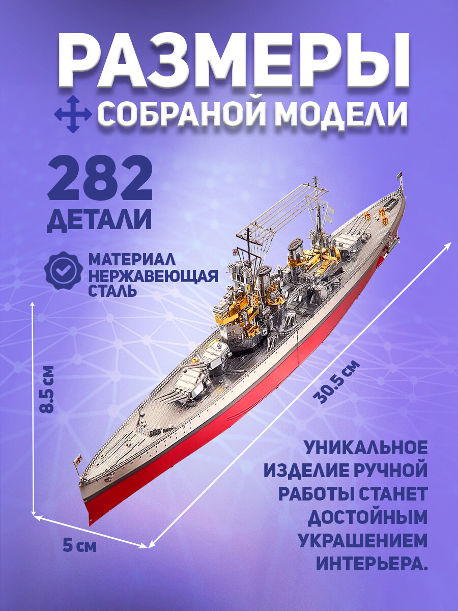 3D-конструктор из металла HMS Prince of Wales - линейный корабль Королевского военно-морского флота Великобритании класса "Король Георг V", построенный на верфи Cammell Laird в Биркенхеде, Англия. У него была обширная боевая история, впервые он вступил в бой в августе 1940 года, когда еще находился на переоборудовании в сухом доке, когда был атакован и поврежден немецкой авиацией. За свою короткую, но легендарную карьеру она участвовала в нескольких ключевых операциях Второй мировой войны, в том числе в битве в Датском проливе в мае 1941 года против немецкого линкора "Бисмарк", сопровождала один из мальтийских конвоев в Средиземном море, а затем пыталась перехватить японские военные конвои у берегов Малайи, когда она был потерян 10 декабря 1941 года.