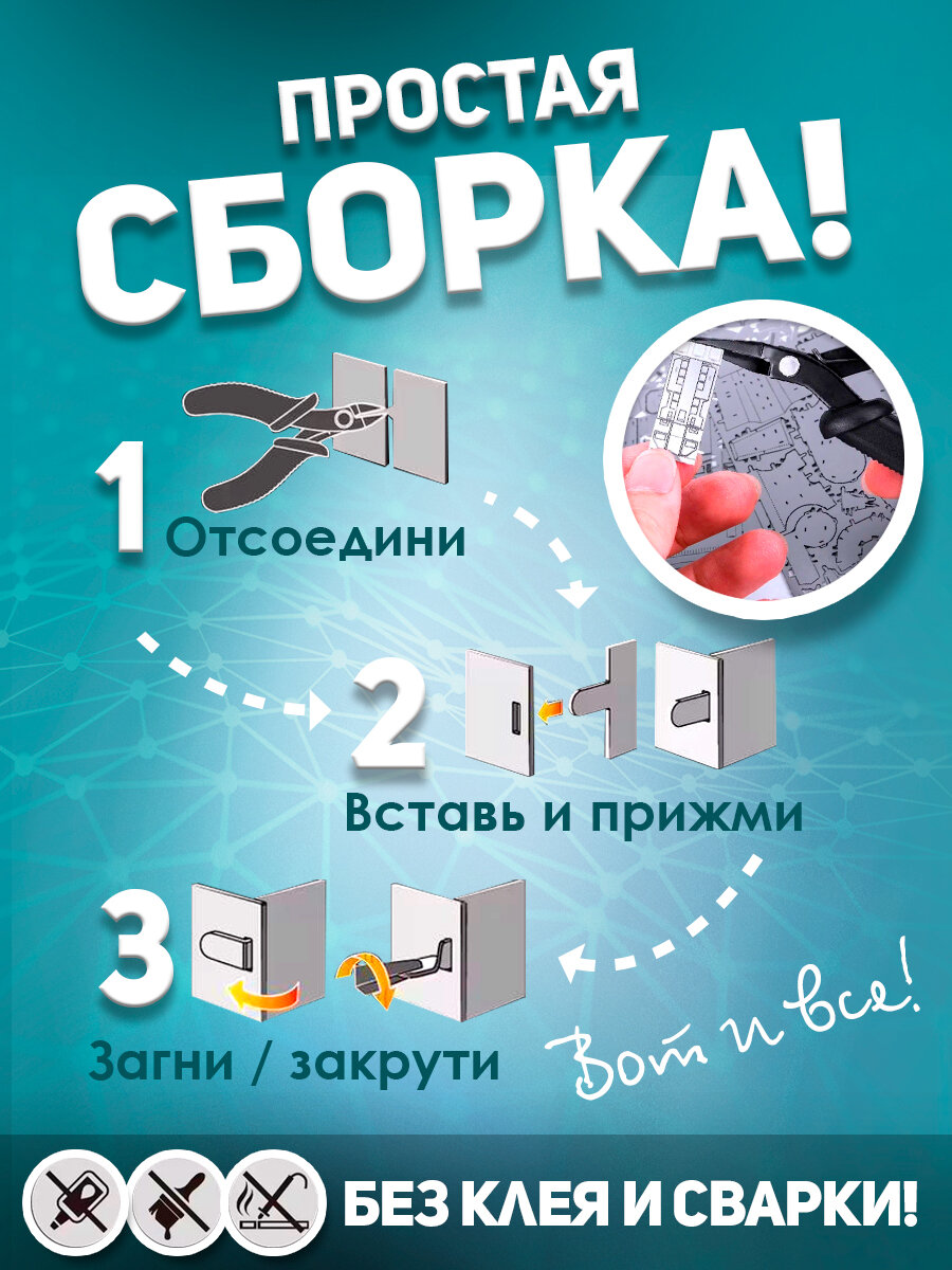 Модель сборная не только функциональна и интересна, но и красиво оформлена! 3D-конструктор из металла отличное решение для подарка. Поистине уникальное изделие ручной работы станет достойным украшением интерьера. Сборка 3D Metal Model - сложная задача, которая может занять более 4 часов, в зависимости от вашей скорости и терпения. Металлический 3D-пазл демонстрирует удивительный уровень точности с оригиналом. Металлические 3D-модели, сборные модели 3Д конструктора - изготовлены из высококачественной нержавеющей стали, и все металлические детали легко скрепляются, при сборке не требуя ни клея, ни пайки.