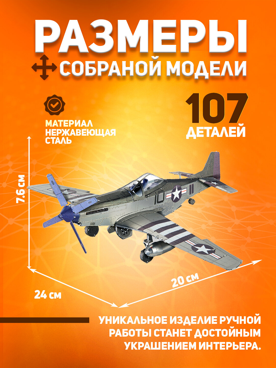 Купить Металлический конструктор 3D, Сборная модель самолета P-51 Mustang, конструктор для взрослых и подростков Piececool, 3D пазл с доставкой по всей России.